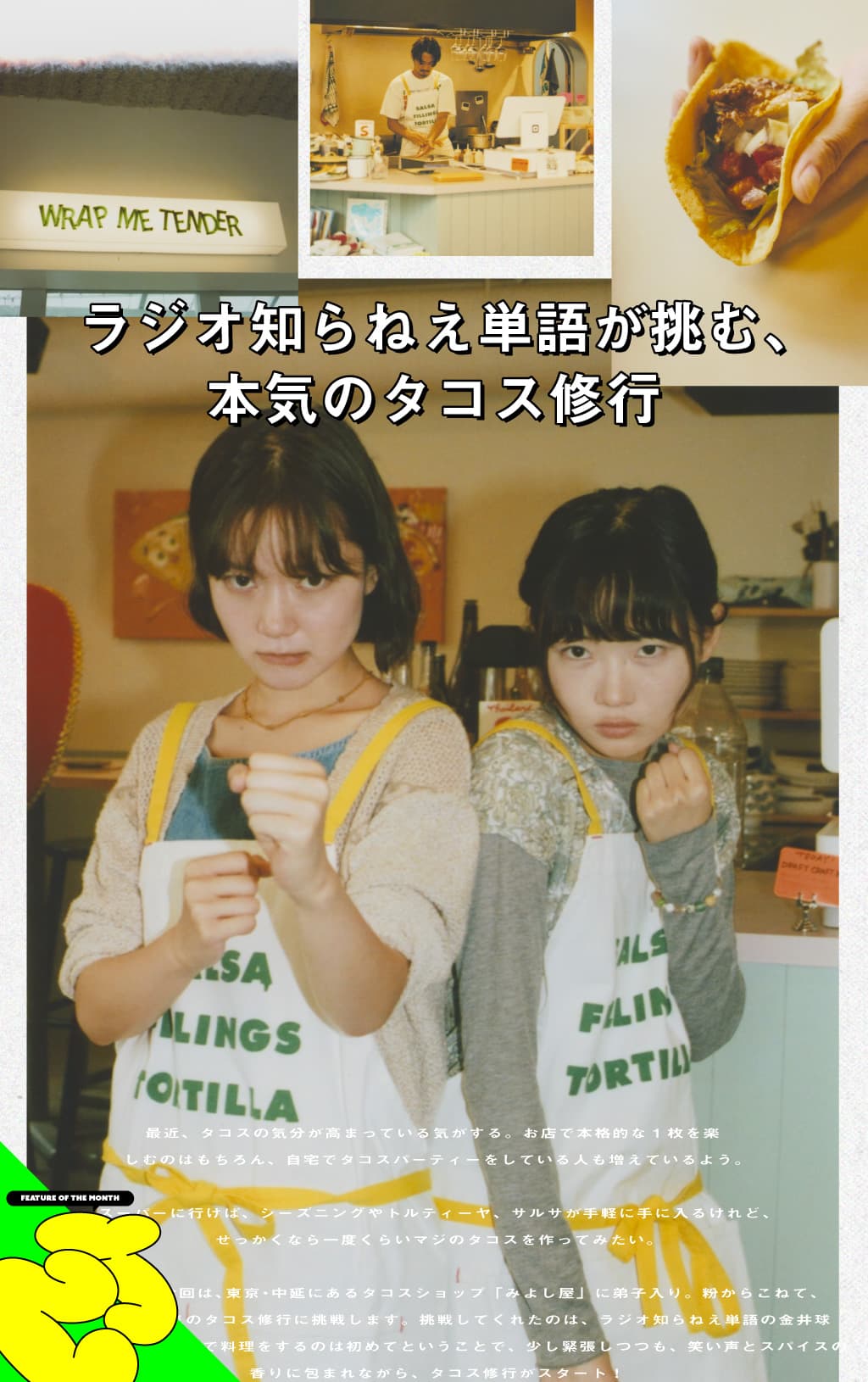 というわけで今回は、東京・中延にあるタコスショップ「みよし屋」に弟子入り。粉からこねて、焼いて、包む、タコス修行に挑戦します。挑戦してくれたのは、ラジオ知らねえ単語の園凜さんと金井球さん。2人で料理をするのは初めてということで、少し緊張しつつも、笑い声とスパイスの香りに包まれながら、いざ修行へ。