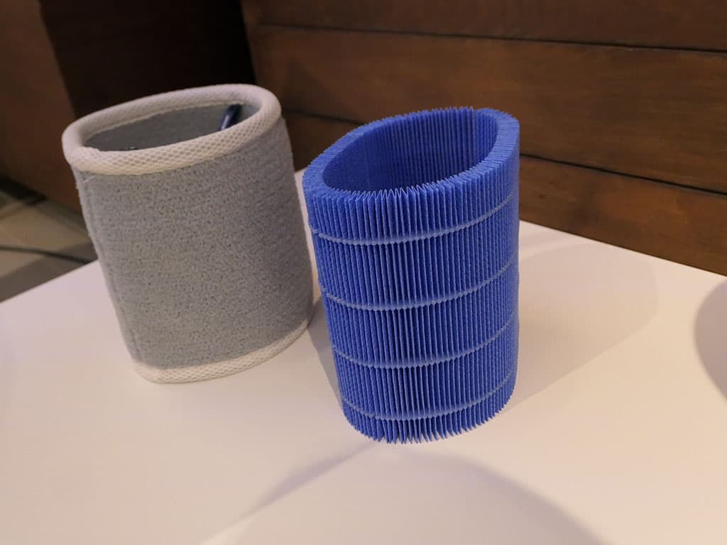 新しい3Dメッシュ構造の抗菌フィルターは、手触りも柔らかい。タオルのような生地の細かい繊維が3Dに織り出されているため、保水量も非常に高く、耐久性も格段に上がったという。