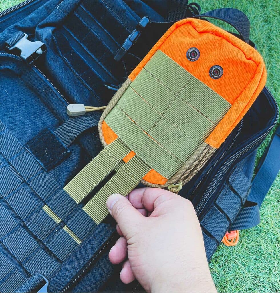 あまったベルトは、ポーチと同色のウェブドミネーターで丸めて固定。1インチ幅のベルクロテープでもいいのですが、これだと周囲にひっかかりにくくなるし、ストラップ類が動かなくなります。ベストサイズをキメたあとに、いつでも同じ背負い心地となるので、他のバックパックを使っている方にもオススメです。