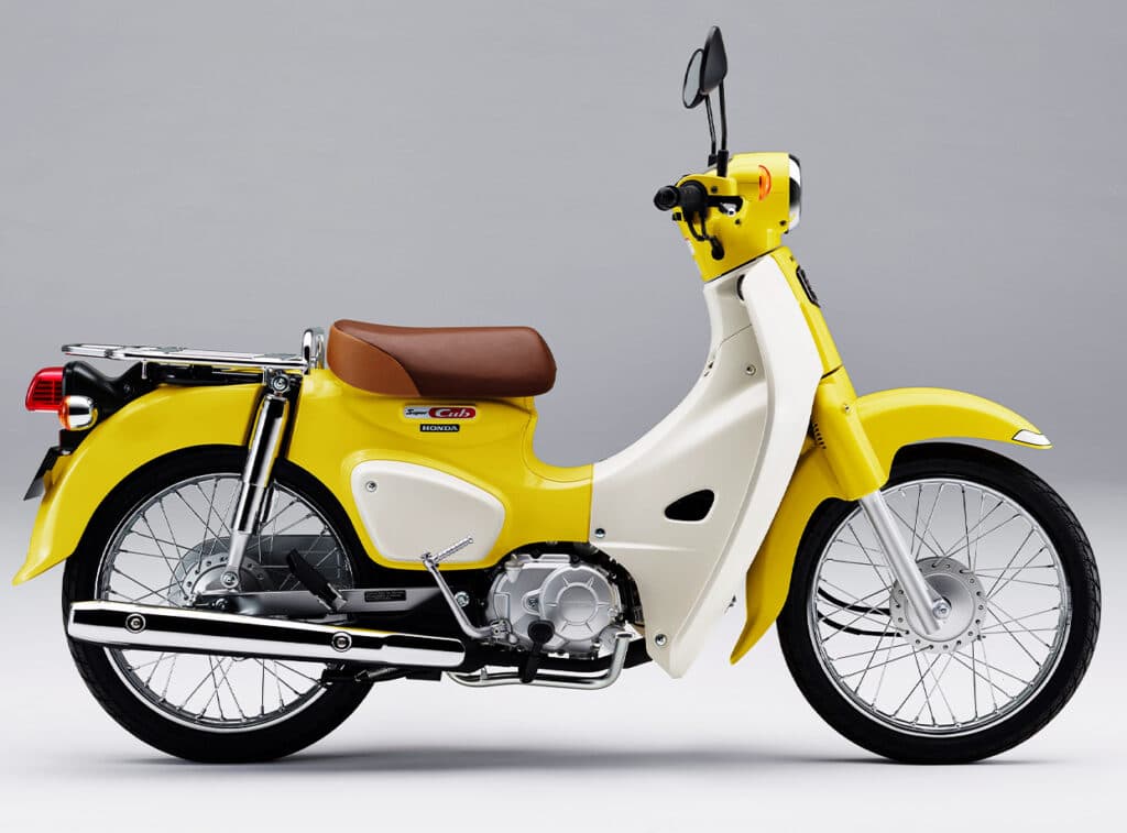こちらが現代のスタンダードモデル「スーパーカブ110」。ポップな車体カラーが用意され、いまや趣味のバイクとして完全に定着している。昔のスーパーカブのイメージしかない人はその動力性能の高さに驚くことだろう。