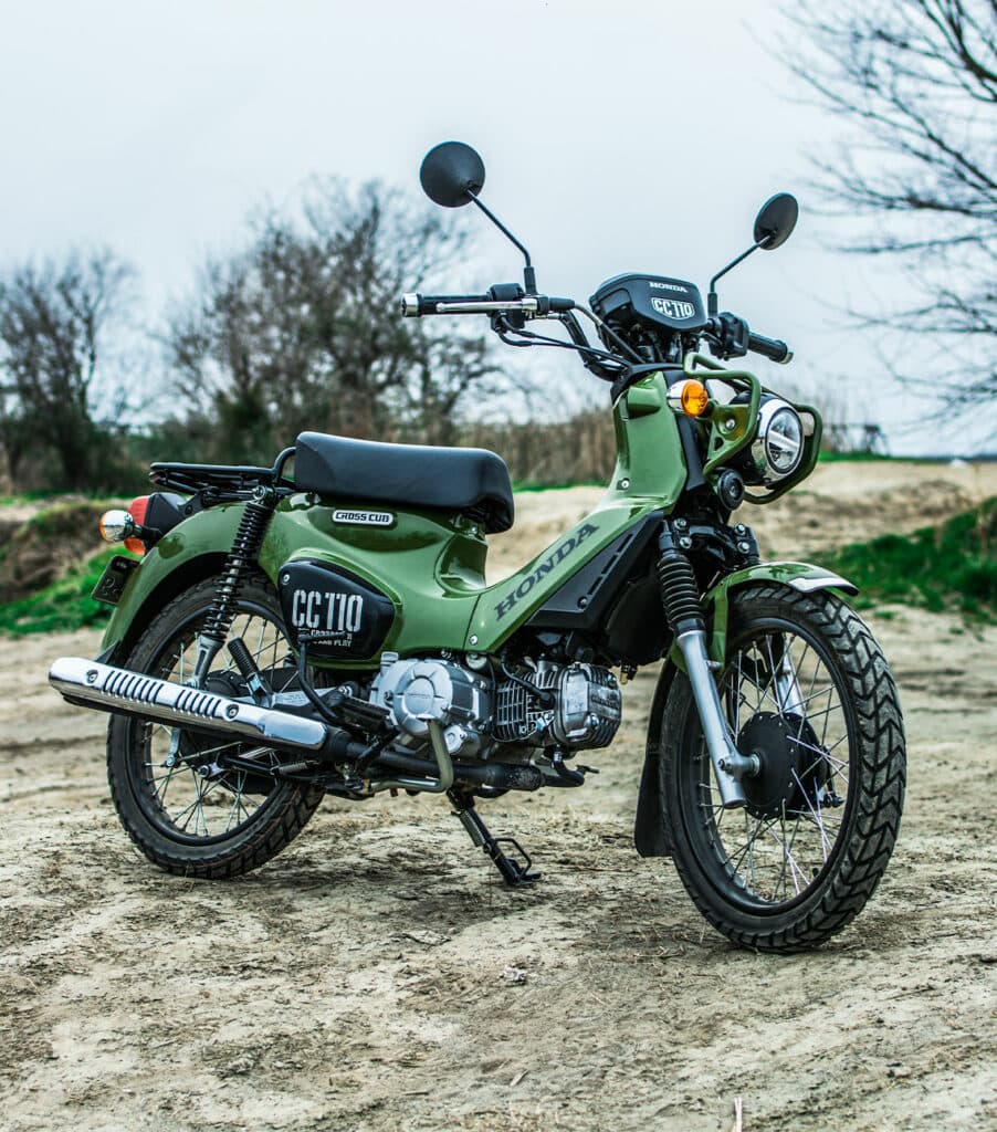 こちらは2018年に登場した二代目「クロスカブ110」。スーパーカブ110をベースにしながら、レッグシールドを廃したアクティブなスタイリングによって実用車イメージを払拭。バイクファンのみならず、アウトドア好きの間でも大人気となった。