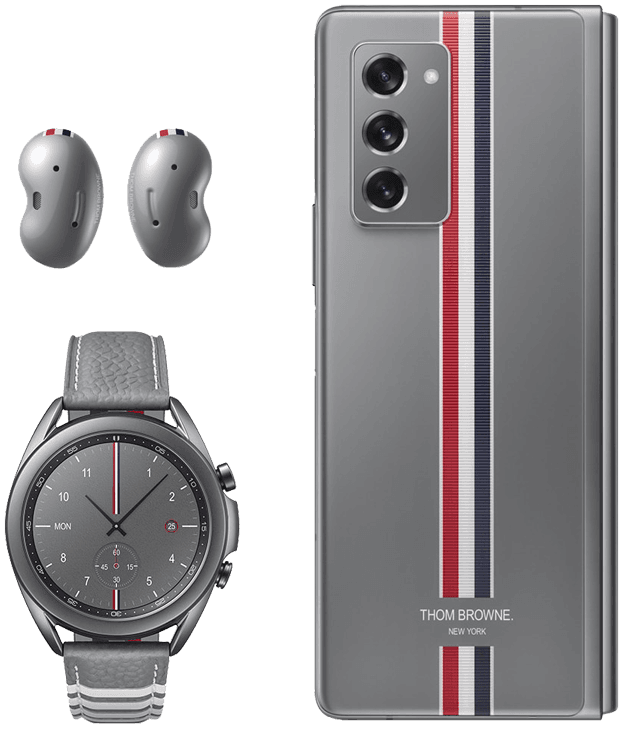 そんな折、原宿のGalaxyに立ち寄ったところ、イヤホンの「Galaxy Buds Live」、スマートウォッチの「Galaxy Watch3」がセットになった「Galaxy Z Fold2 Thom Browne Edition」に出会った。そして直感的に思う。これは自分に何か大きな変化をもたらしてくれるだろうと。