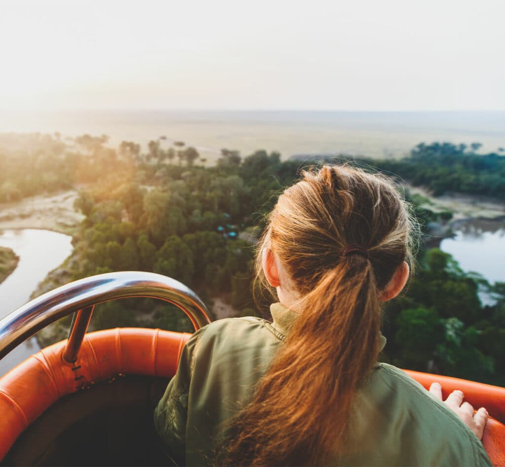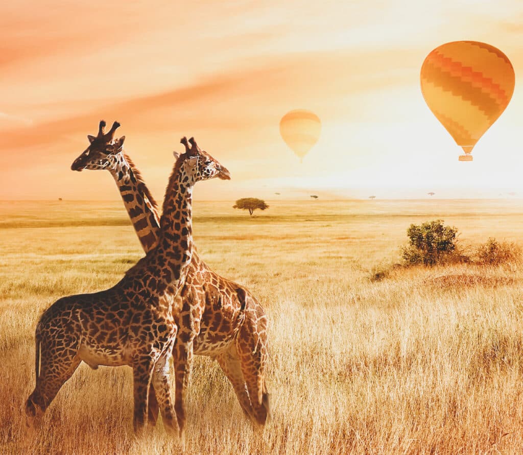 気球からサバンナを見下ろす「バルーンサファリ」も面白かった。ゲームドライブと視点が大きく変わることはもちろん、何より新鮮だったのは、動物たちから気づかれずに観察できること。たとえば、警戒心の強いヌーを、大群で目撃できた。