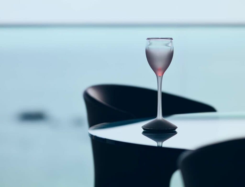 防水性能があるので、実際にシャンパンなどを注ぐこともでき、しかも液体を通すと驚くような光と影が天井や壁に映し出されるのだが、僕の写真技術ではこの倉俣作品の素晴らしさを伝えきれないので、点灯している写真はメーカーからお借りした(最後の点灯していない写真は我が家のキッチンにて。アンティークのグラスなどと並べて愛でるのがお気に入り)。
