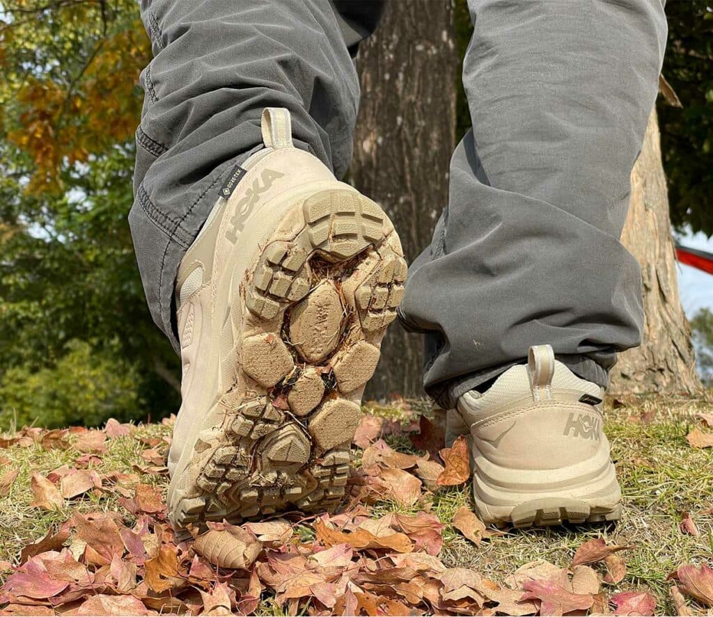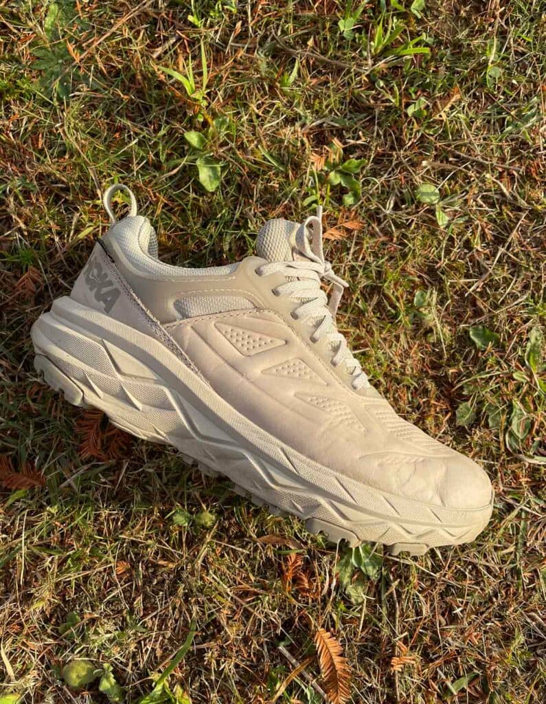 そんなわけで、筆者も白と黒の定番カラーのスニーカーを中心に、随時アップデートしながら理想のアウトドアスニーカーを探し求めてきた。現在は4~5足をローテーションして履いているが、中でもエースで4番的存在なのがホカ オネオネの「チャレンジャー ロー GTXワイド(2万7500円)」だ。