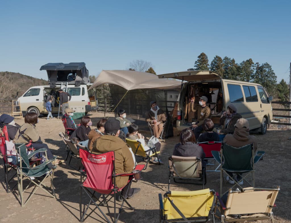 今年2月に埼玉県ときがわ町のキャンプ民泊「NONIWA」で開催された「車中泊キャンプとDIY講座」。4人の若手バンライファーが集まってそのノウハウを伝授するというもの。コロナ禍以降、車中泊やDIYに対する一般の関心はとても高くなっており、すぐに定員に達したという。