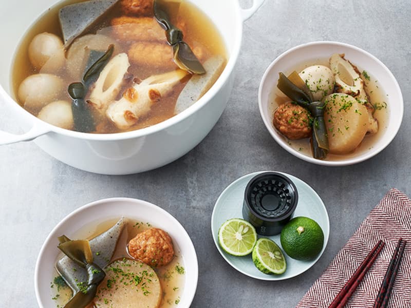 また、果汁も絞れる2WAY仕様なので、すだちの皮も果汁も無駄なく使えて、ひとつのツールだけでお料理の幅も広がります。料理の印象をガラッと変えてくれる“香り”は新しい調味料。テーブルいっぱいに広がる香りが、これからも続く“僕らの料理”をアップデートしてくれます。