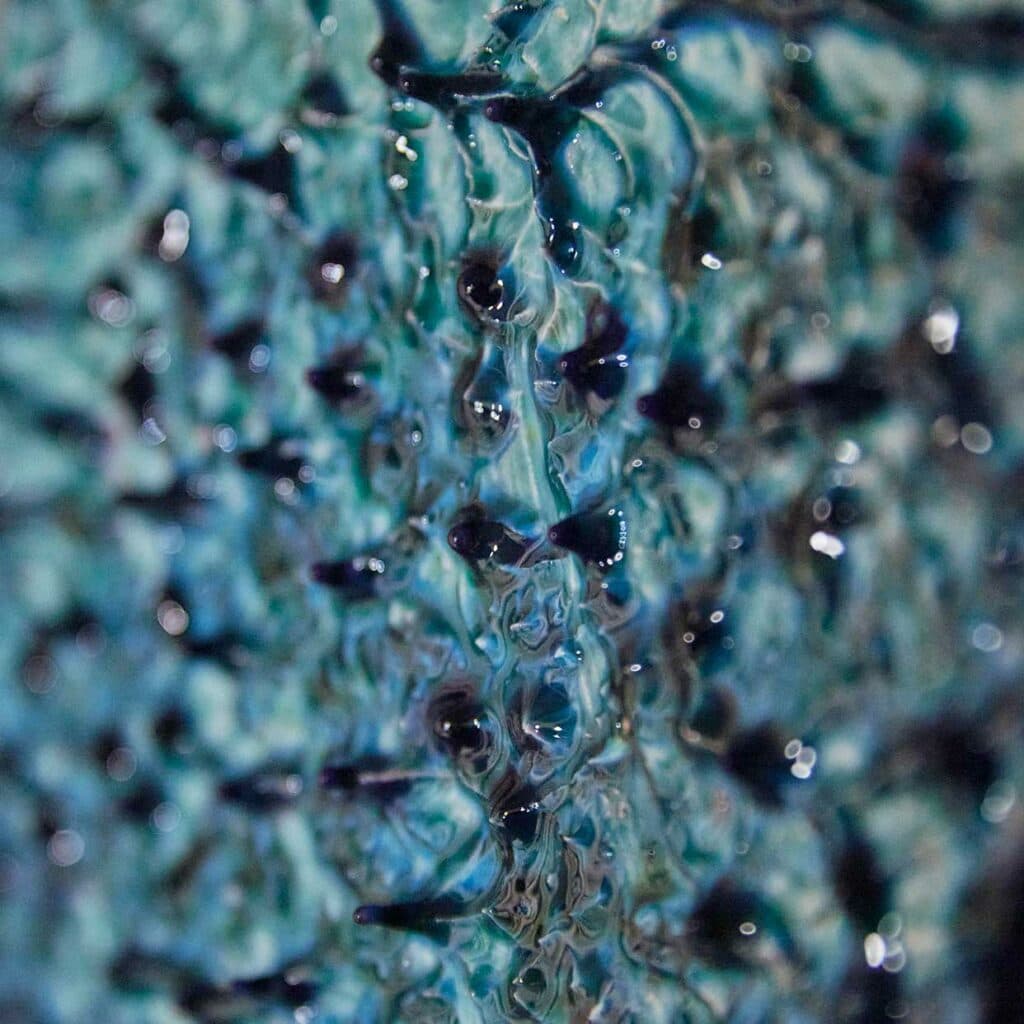 今後は平面で描いている作品を三次元化したり、彫刻的なアプローチに取り組んでみたい、と話す三浦さん。取材の合間、試作中で、と見せてくれたのは、波打つような絵具の造形が何とも興味深い作品。2枚のパネルを合わせた間に絵具を入れて引きはがす転写技法「デカルコマニー(※1)」から着想し、絵具のついた面を下にして乾燥させたという。