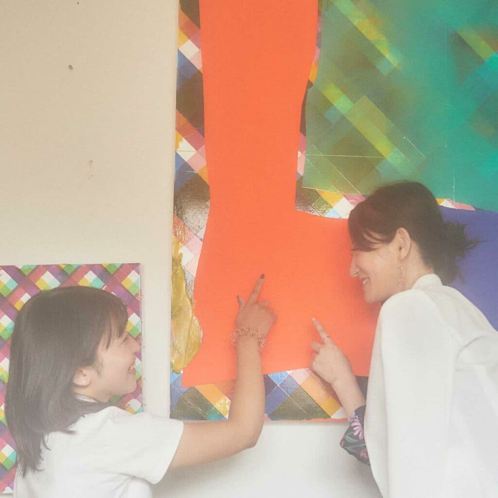 自らもアートコレクターでアートビジネスの起業家でもある岩崎かおりさん。今回訪ねたのは、2021年春に大学院を修了したばかりでありながら、すでにいくつもの個展を開催している注目の作家・松岡柚歩(まつおか・ゆずほ)さんのアトリエです。まるで躍るような色彩が画面いっぱいに広がる松岡さんの作品には、不思議とぱっと目を引き、感覚的に好ましく感じるような魅力があります。なぜ早くから注目を集めるのか、その理由が垣間見える対話となりました。