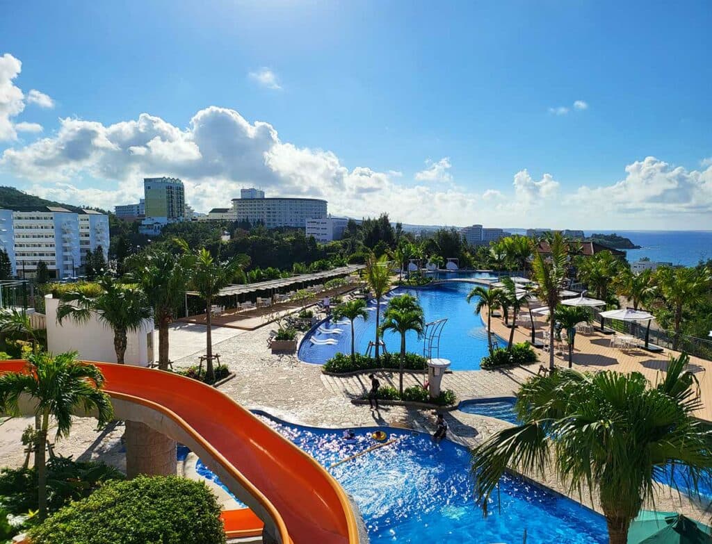されど沖縄。真面目にいろいろ学びたい気持ちもあるが、南国特有の開放感がそれを許さない。訪問したのが11月中旬から下旬にかけてにもかかわらず、最高気温は25度前後。短パンTシャツで過ごせるほど晴れ渡っていた。オンラインミーティングの相手によると、東京はその頃天気が悪く、最高気温が15度を下回る日もあったくらい。本州の人間にとっては、まさに爽やかすぎる初夏へと舞い戻った気分。目の前に広がるプールで泳ぐ観光客も数多くいて、否応なくテンションも上がっていた。