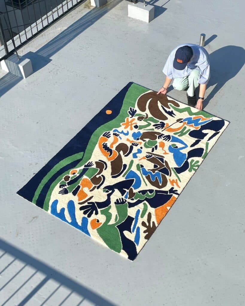 徳島県にある伝統的な敷物工場で得た技術をベースに一つひとつ手作業でラグを制作。アーティストやブランドとのジャンルレスなコラボレーションも行う。合言葉は “madewithlove”